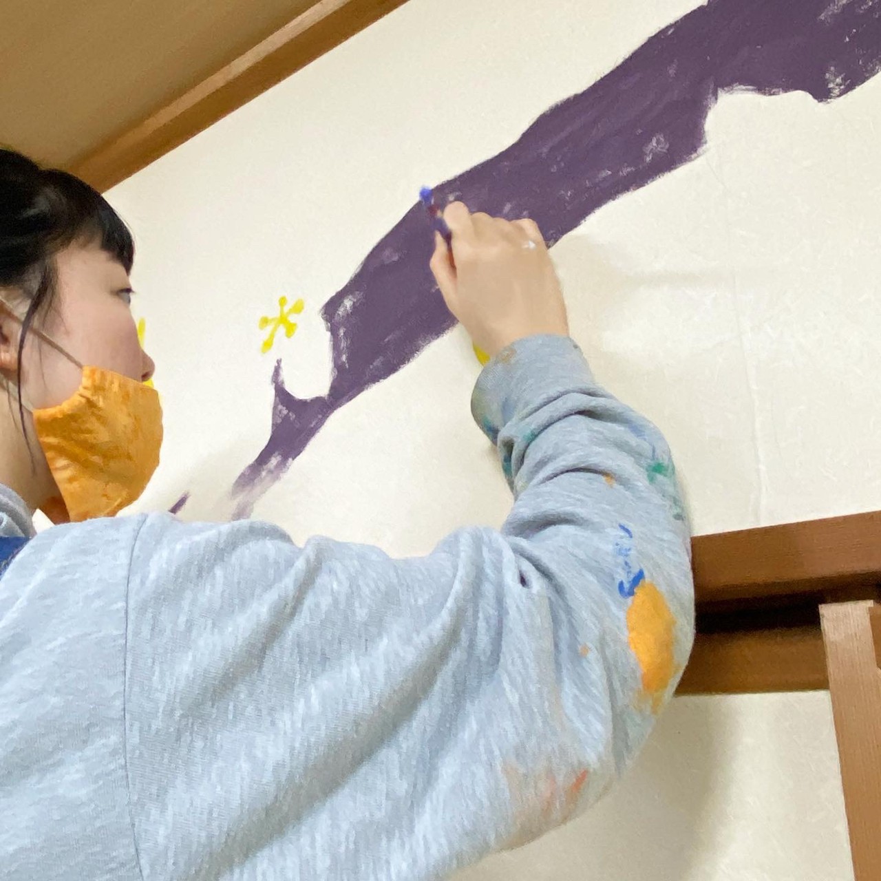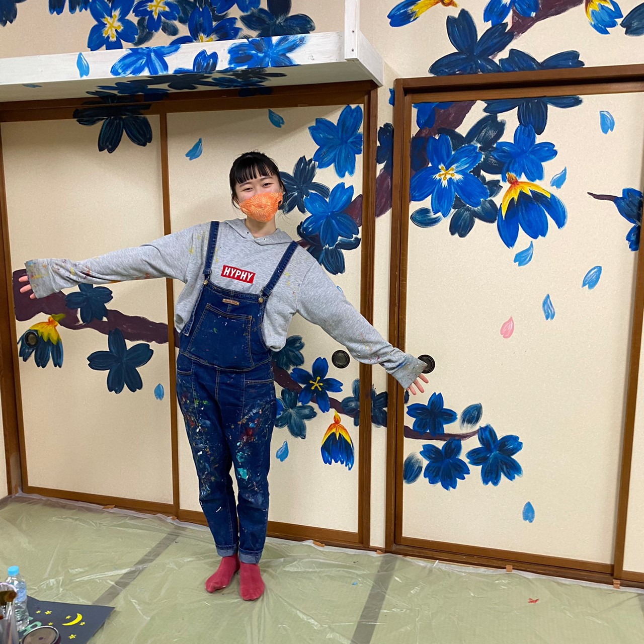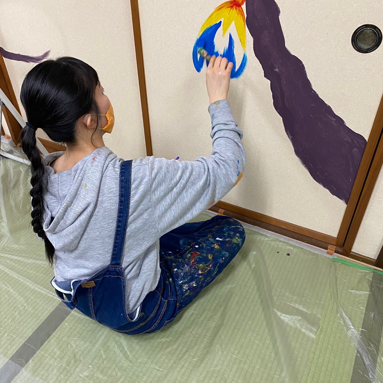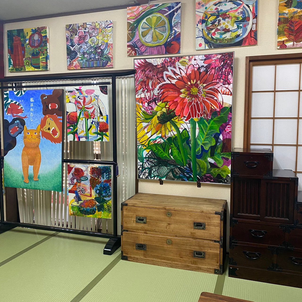 幼少から通った絵画教室で制作した作品~新作まで約30作品を展示し、個展開催中にはライブアートパフォーマンスで壁画を完成させました。