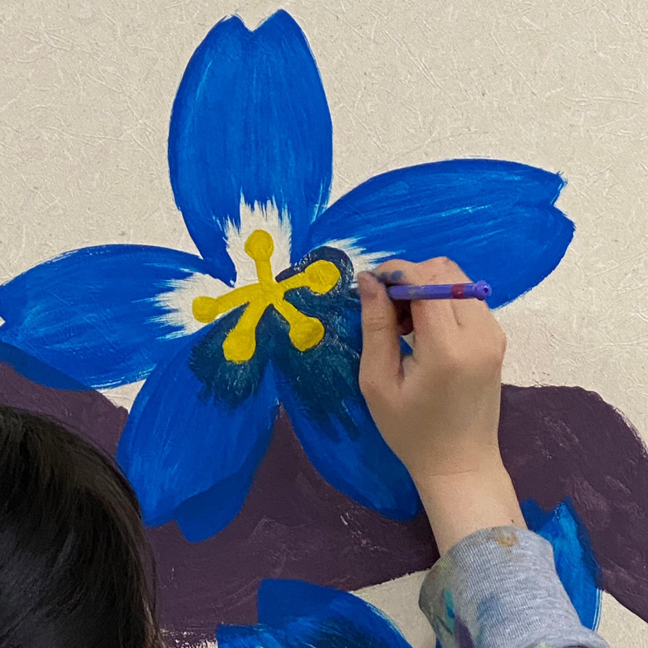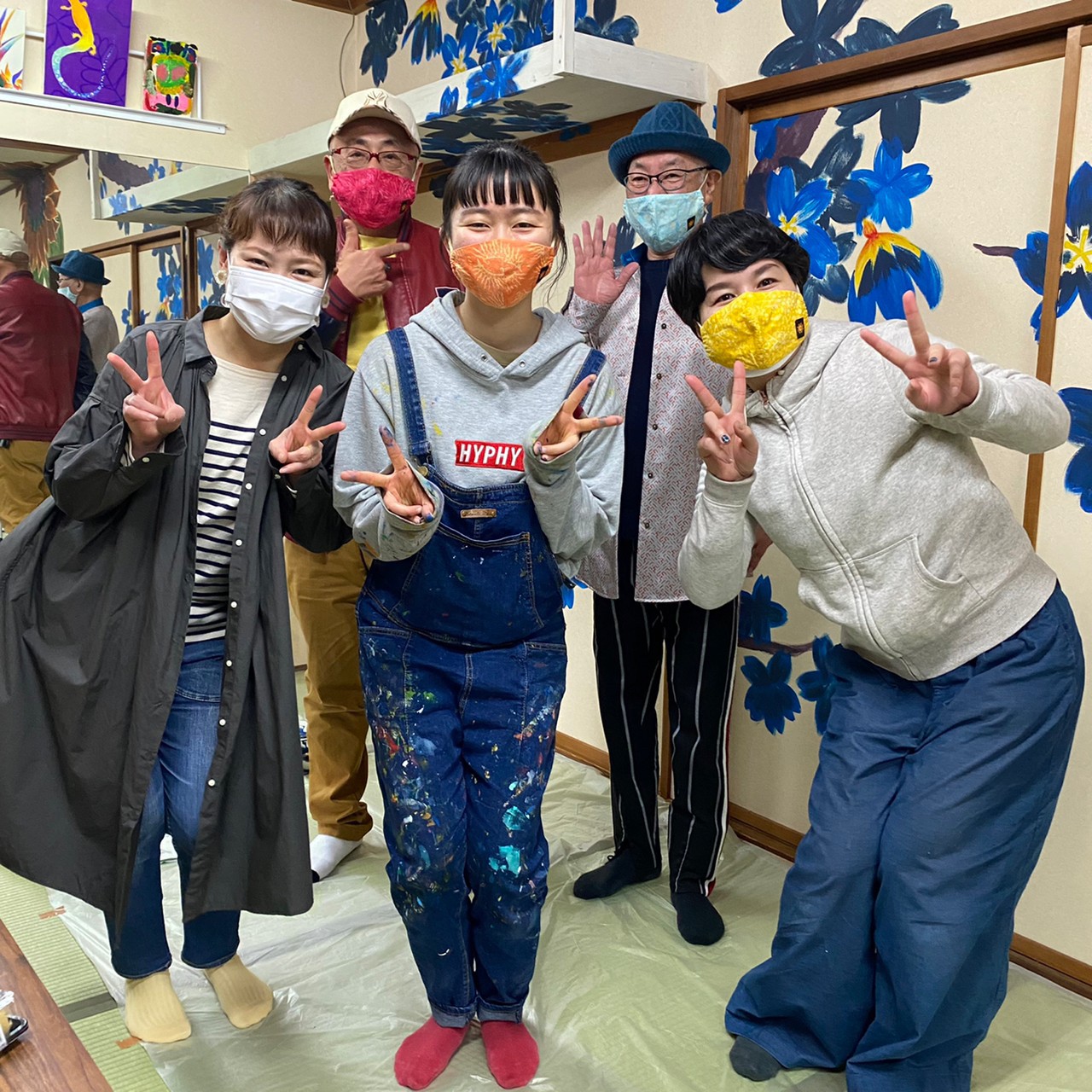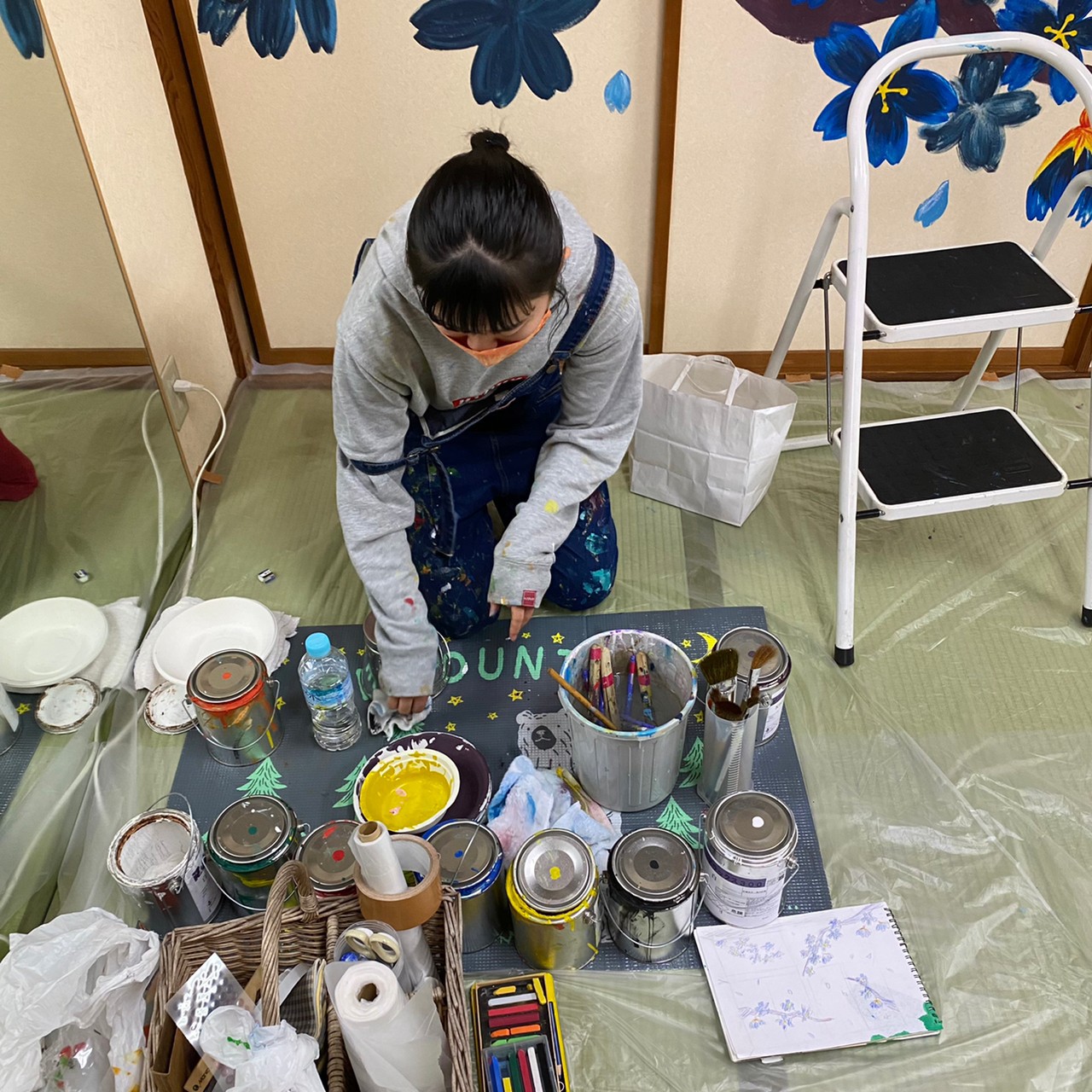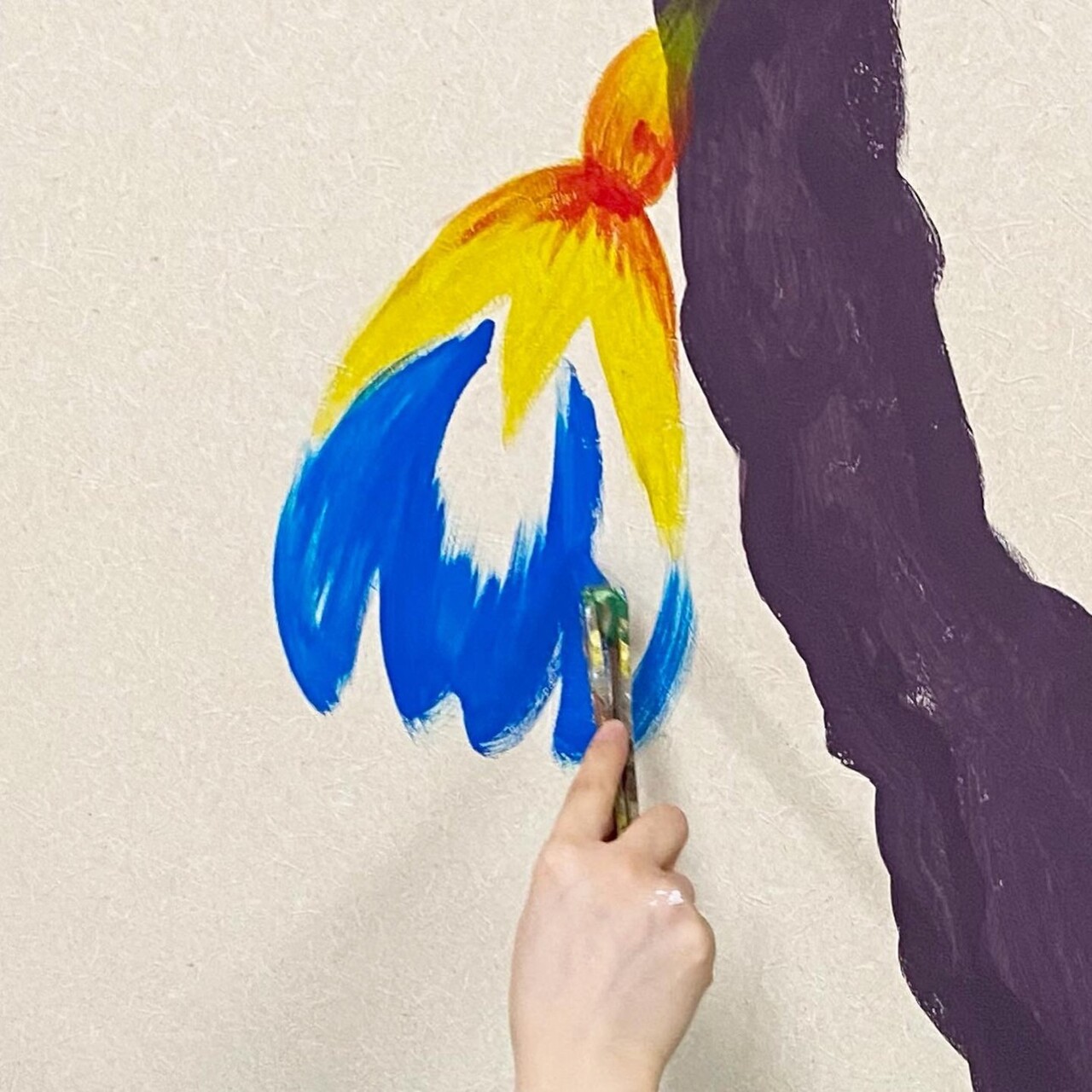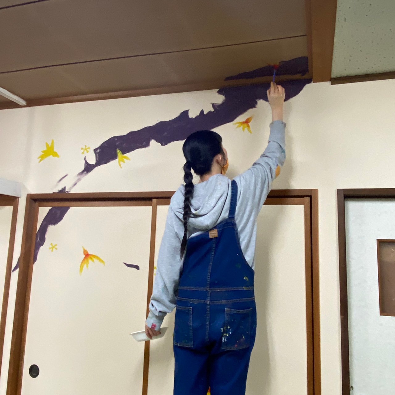 幼少から通った絵画教室で制作した作品~新作まで約30作品を展示し、個展開催中にはライブアートパフォーマンスで壁画を完成させました。